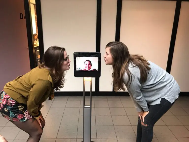 “Je moet Scotty zien als een soort iPad op wieltjes. Hij heeft een schermpje en wifi. Door middel van mijn laptop thuis kan ik hem bedienen en besturen. Door hem op afstand rond te laten rijden in de klas kon ik kennismaken met mijn nieuwe klasgenoten, een praatje maken met de docenten en de lessen volgen. Het enige dat Scotty niet kan, is traplopen en hij kan niet tegen regen, haha. Mijn vriendinnen haalden ‘m elke ochtend voor me op, sjouwden hem in en uit de lift en zetten hem voor me in de klas. Huiswerk en opdrachten werden vooraf naar me gemaild en vragen stellen aan de docent kan ook via Scotty. Dankzij de robot heb ik een maand onderwijs niet hoeven missen, dat is bijna een volledig blok”, aldus Puck die gelukkig inmiddels volledig is hersteld en haar lessen weer gewoon op TMO volgt.